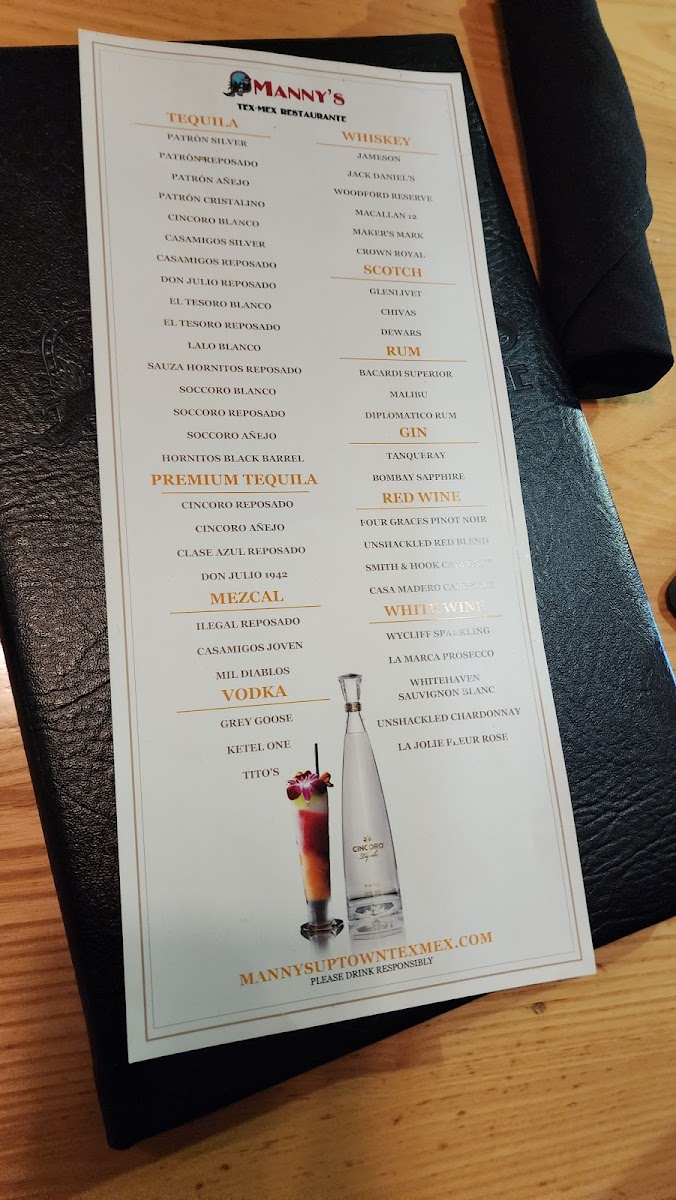 Every visit feels like a celebration, whether you’re sharing a meal with family or enjoying drinks at the bar. The attentive staff, including standout bartenders, ensure that guests feel right at home, creating a joyful ambiance perfect for any occasion. Whether it's a cozy dinner or a night out, Manny's Tex-Mex invites you to indulge in a culinary experience that keeps patrons coming back for more.